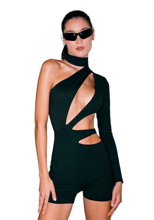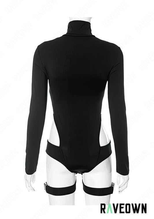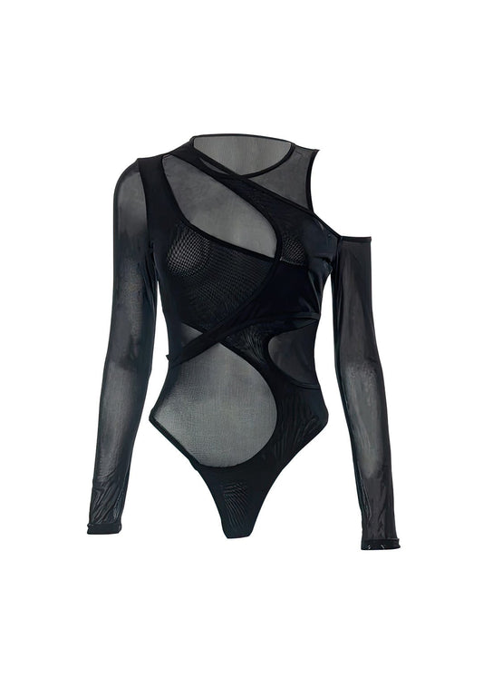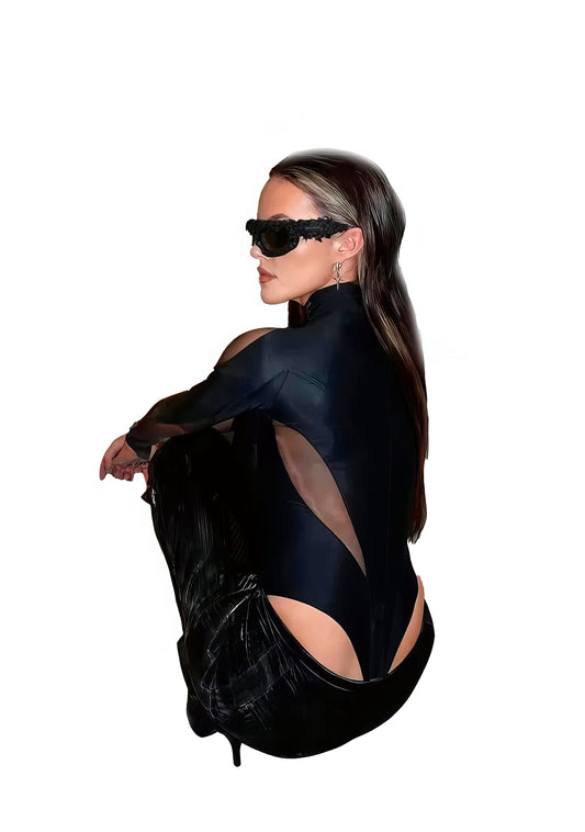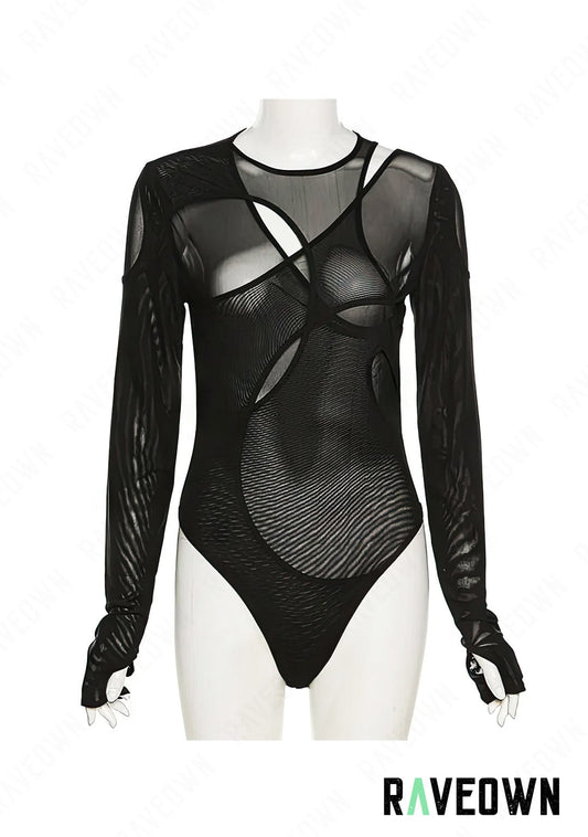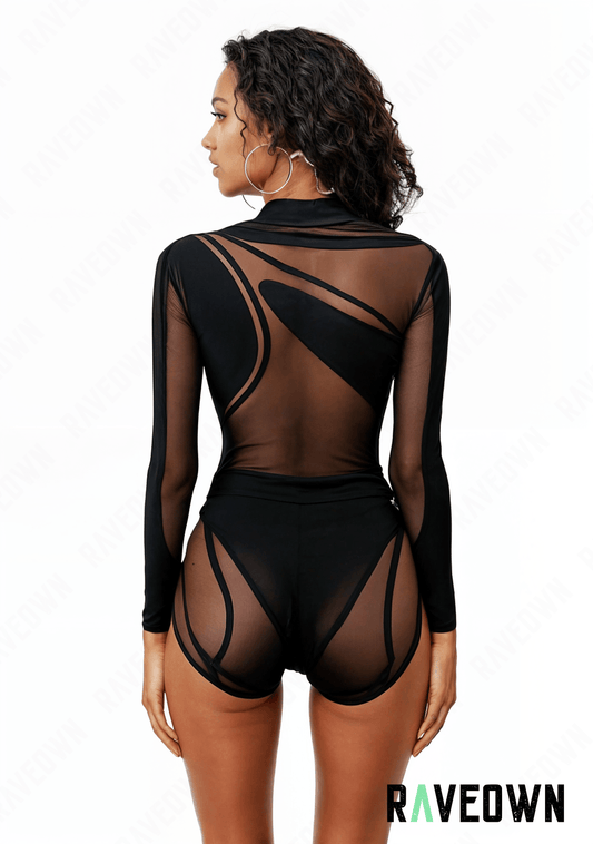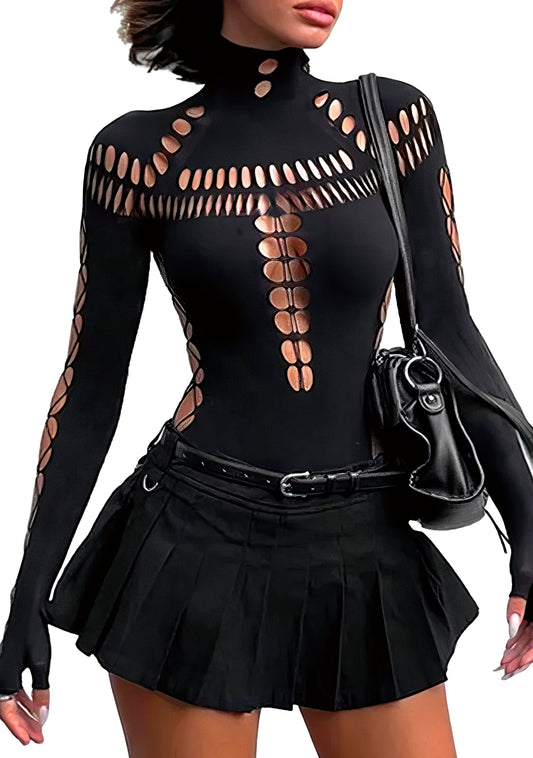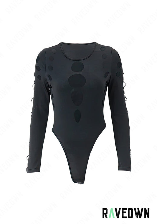 Body Manche Longue Noir Ajouré Géometrique | High.Rave