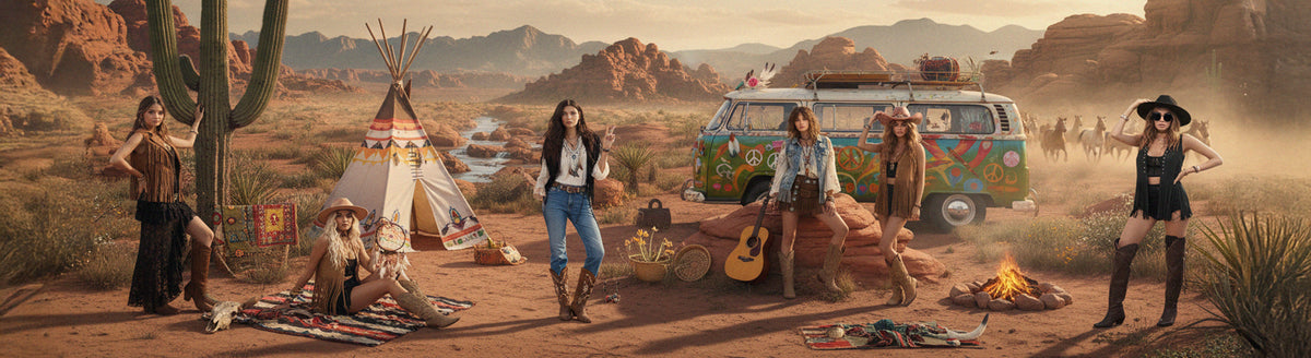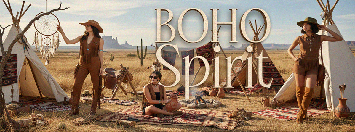 Explore toutes nos sous collections pour composer ton univers bohème complet : BOHO Spirit pour l’esprit désert et les plumes, Hippie BOHO pour la vibe seventies solaire, BOHO Wild West pour l’allure cowgirl désinvolte, et BOHO Accessoires pour les détails qui changent tout.
