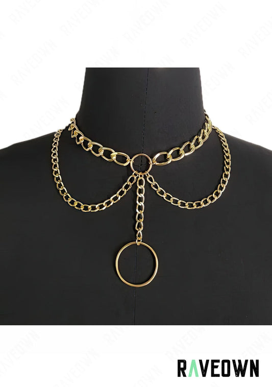 Le layering n’a pas de limite : choke-ring serré, puis chaîne média, enfin longue corde qui tombe sur la poitrine. Chaque étage reflète un spot différent, créant une pluie de reflets autour de ta tenue soirée techno. Tu deviens la boule à facettes mobile du festival.