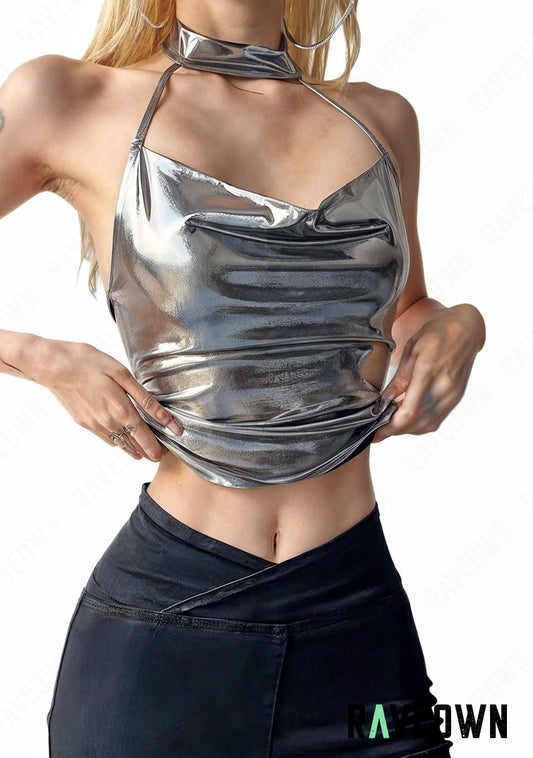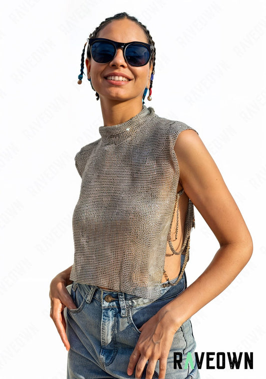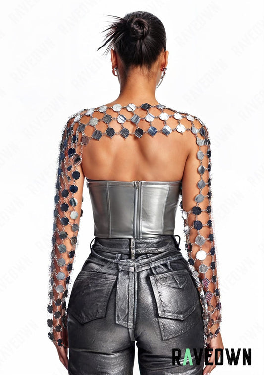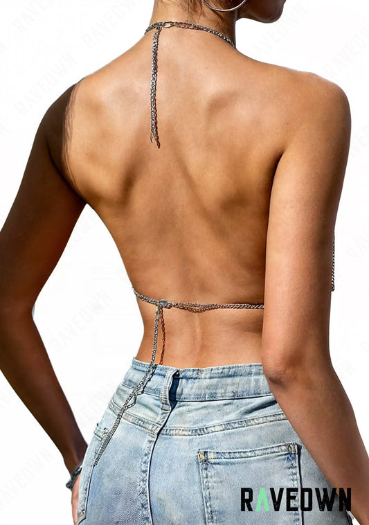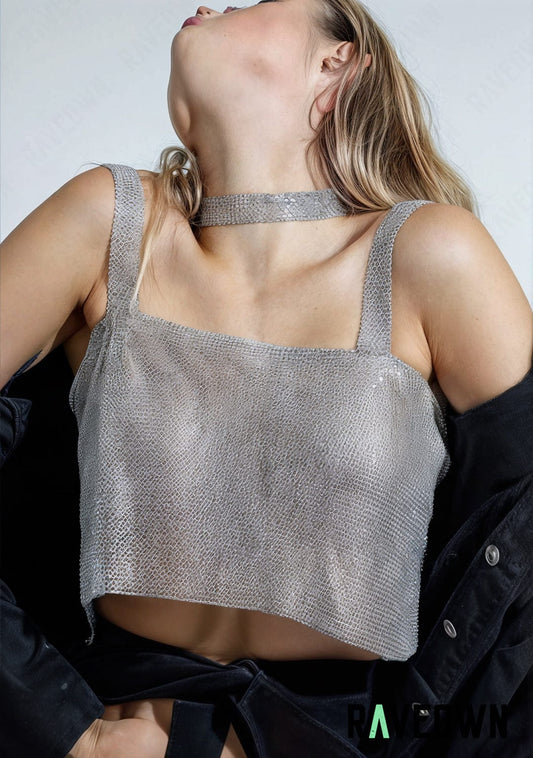 Crop Top Scintillant Chaînes | MOON SILVER