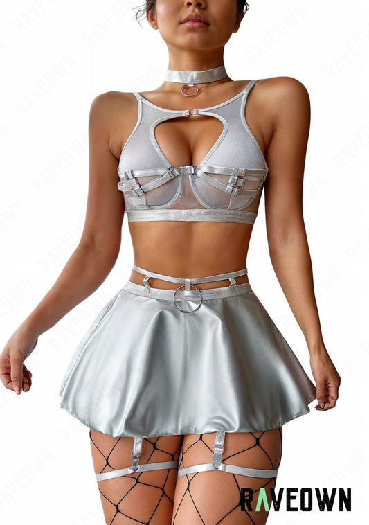 La collection Moon Silver est une ode à la créativité infinie, idéale pour les amatrices de mode techno et rave. Chaque tenue est conçue pour offrir une allure visionnaire et une expressivité éclectique :