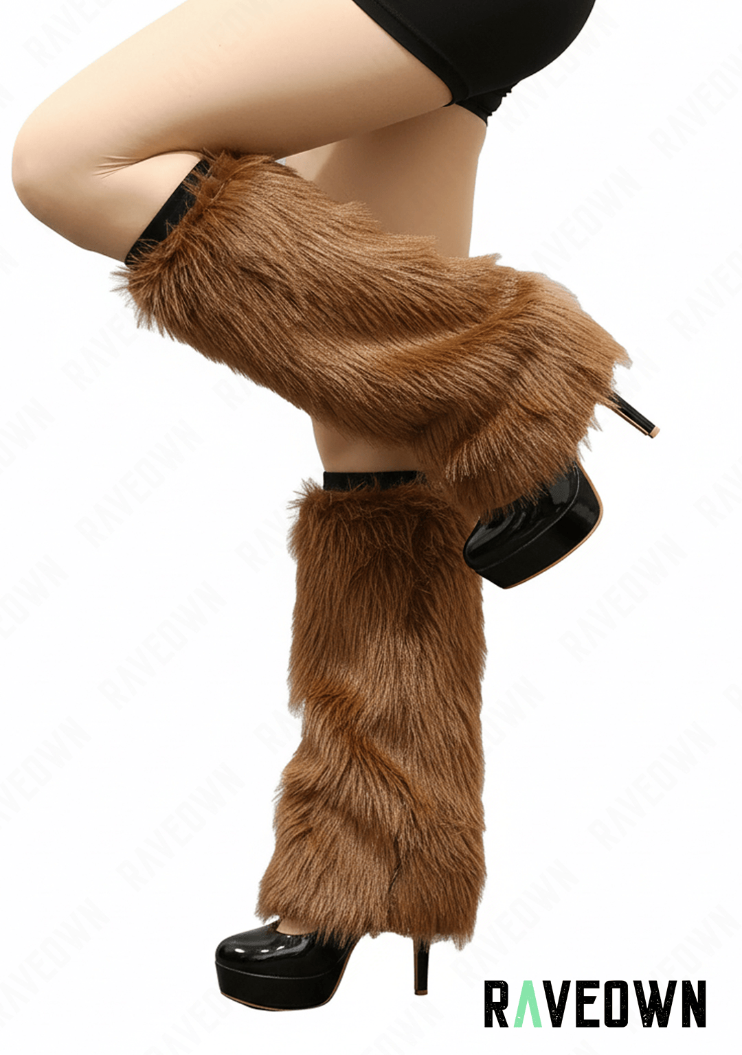 Les jambières Rave In Fur transcendent les nuits glacées des festivals d’hiver. Sous un ciel étoilé, au cœur d'une rave dansante entre les sapins enneigés, ces jambières enveloppent vos jambes d’une chaleur irrésistible. Tandis que le rythme effréné vous fait oublier la morsure du froid, la fausse fourrure devient votre armure tribale. Vos mouvements se délient, votre audace se révèle, et le contraste entre l’hiver extérieur et votre feu intérieur s'intensifie.