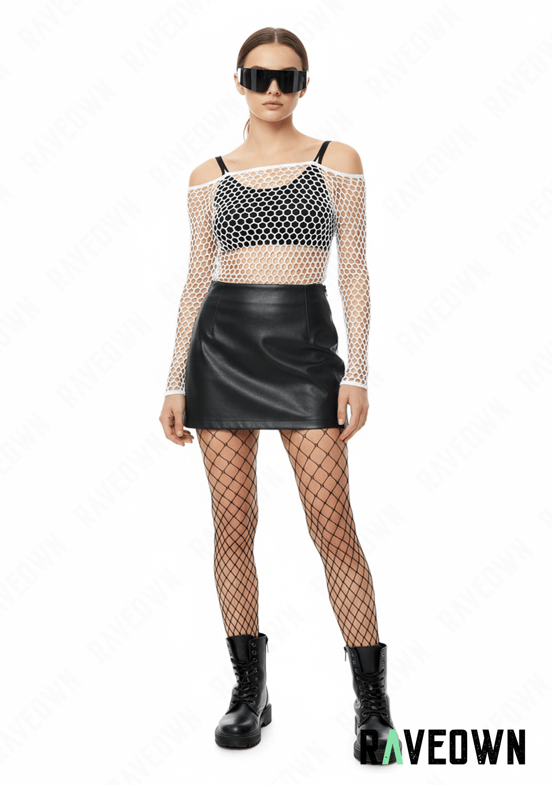 Les Tops Résille Blanc de RAVEOWN sont vos passeports vers un univers où le contraste règne. Dans un club enfumé ou une warehouse éclairée aux néons, ces tops découpent la salle d'une lumière presque irréelle. Sous la lumière noire, ils deviennent des toiles où chaque mouvement s'exprime pleinement, capturant la silhouette et la libérant dans un jeu de lumières hypnotiques. Le blanc éclatant tranche avec la nuit, révélant une aura de mystère et de sensualité.